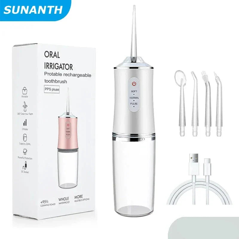 Mantenha seus dentes limpos e saudáveis com o Irrigador Dental Portátil BrilhoJet. Prático, recarregável e eficaz para uma higiene bucal completa!