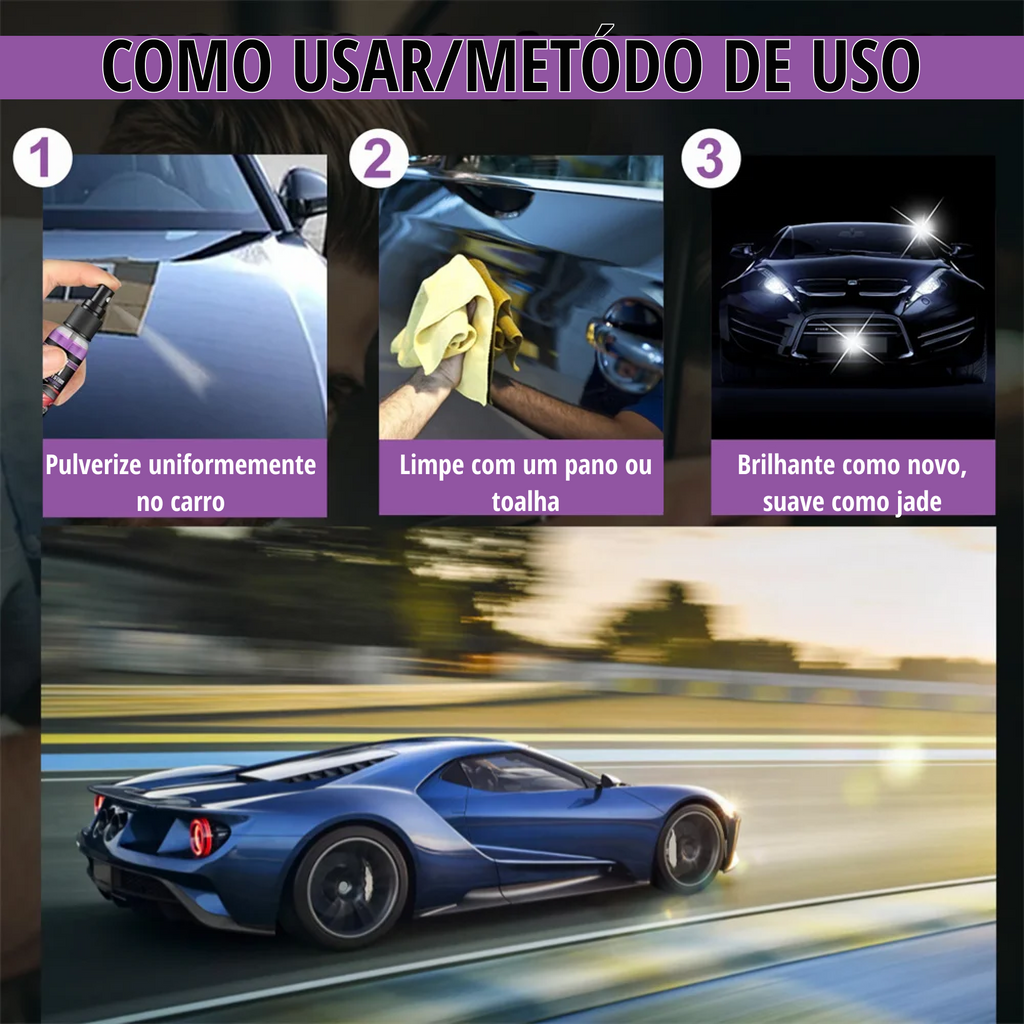 • Proteção Prolongada: Com fórmula avançada em nanotecologia, o spray forma uma camada de proteção que resiste a manchas d'água, oxidação e outros contaminantes, mantendo o brilho do carro por um longo período.